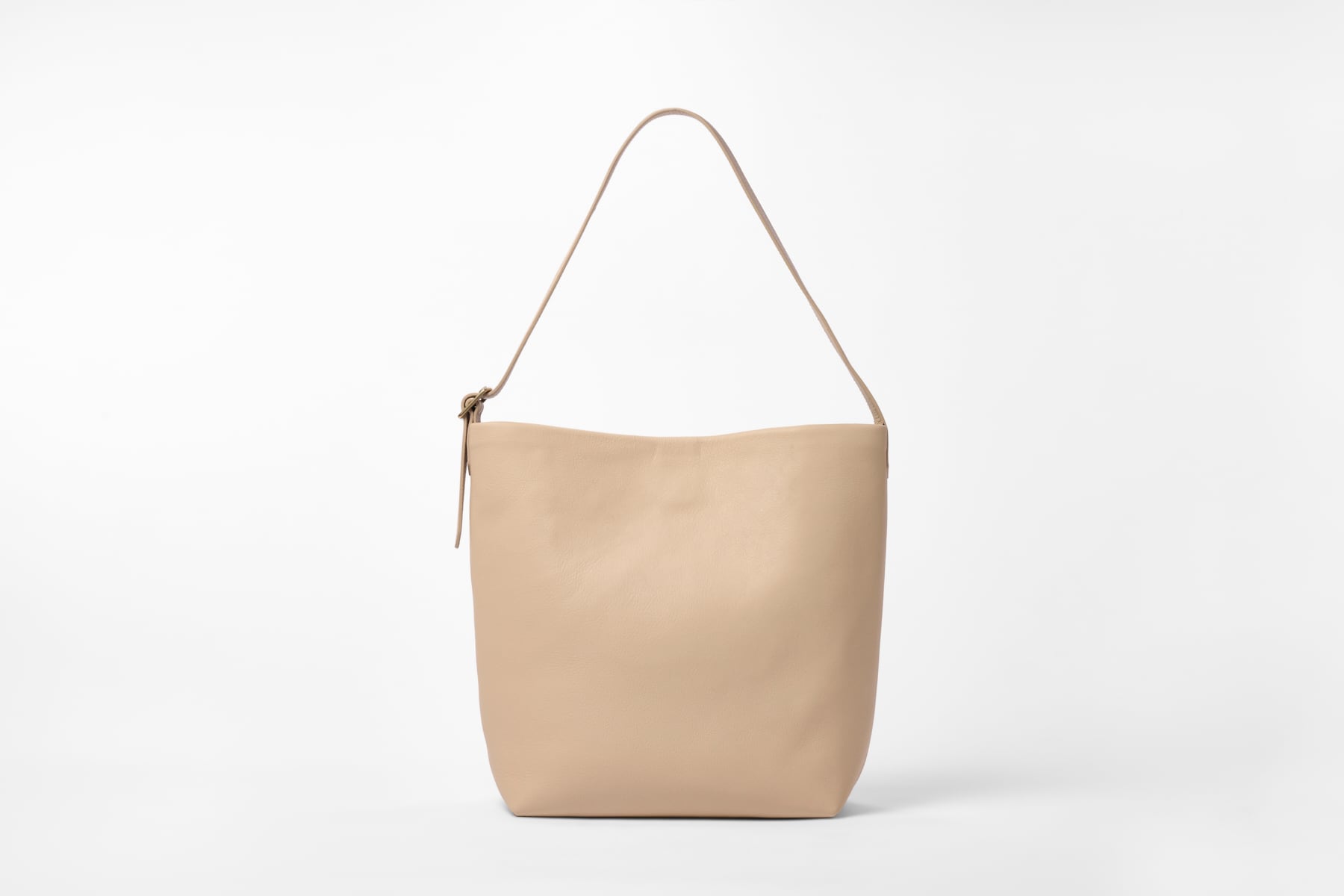 DRAWSTRING BAG SMALLは、シンプルながらも存在感のあるデザインが魅力のドローストリングバッグです。ミドルなサイズ感ながら、イタリア製クローム鞣しレザーを採用し、普段使いからトラベルまで幅広いシーンで活躍します。