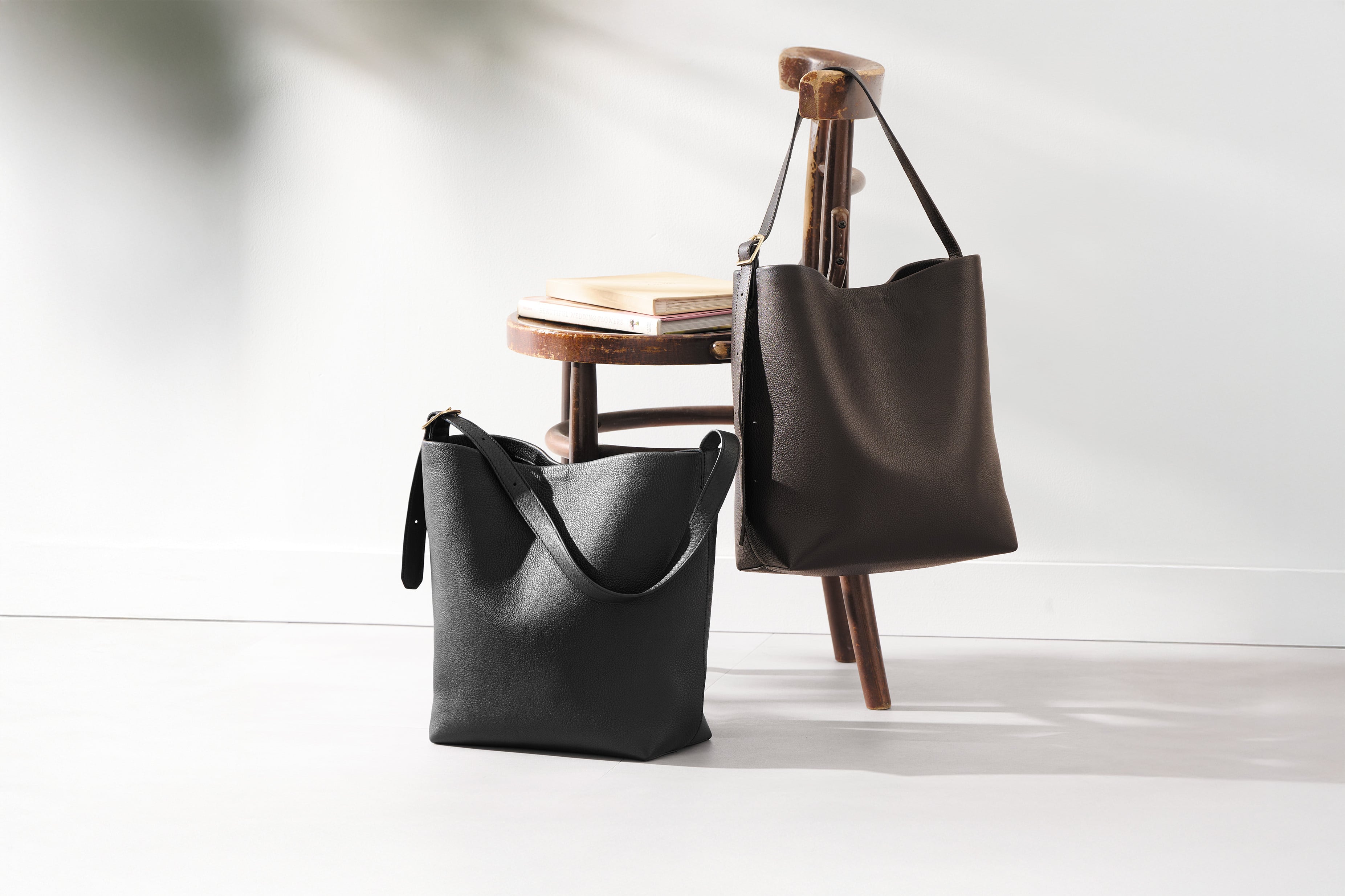 開口部はドローストリング仕様で、素早く開閉が可能。そのため、さっと必要なアイテムを取り出すことができ、利便性も抜群です。シンプルながらも上品な雰囲気、軽量で持ち運びやすく、気軽に使えるデイリーバッグとして最適です。